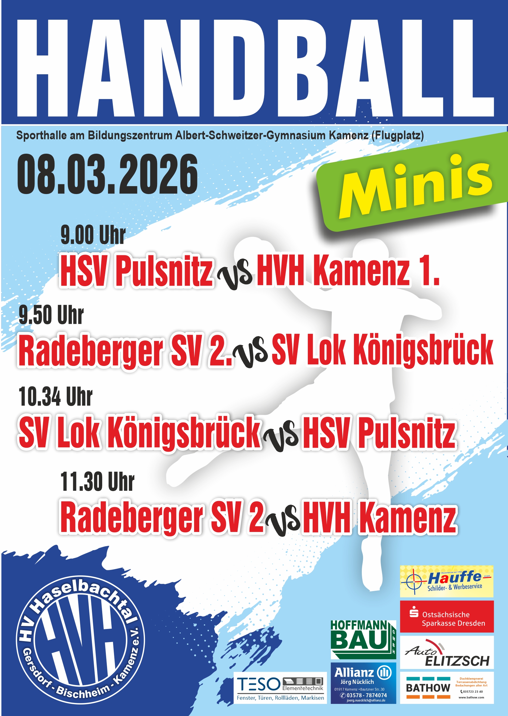 Rückrundenauftakt erfolgreich gemeistert Zum Rückrundenstart musste unsere weibliche Jugend D nach Bautzen fahren. Gegen den 4. Platzierten SV Obergurig wollten die HVH-Mädels ihre nächsten 2 Pluspunkte sichern und so auch ihren 2. Tabellenplatz weiter bestätigen. Das...