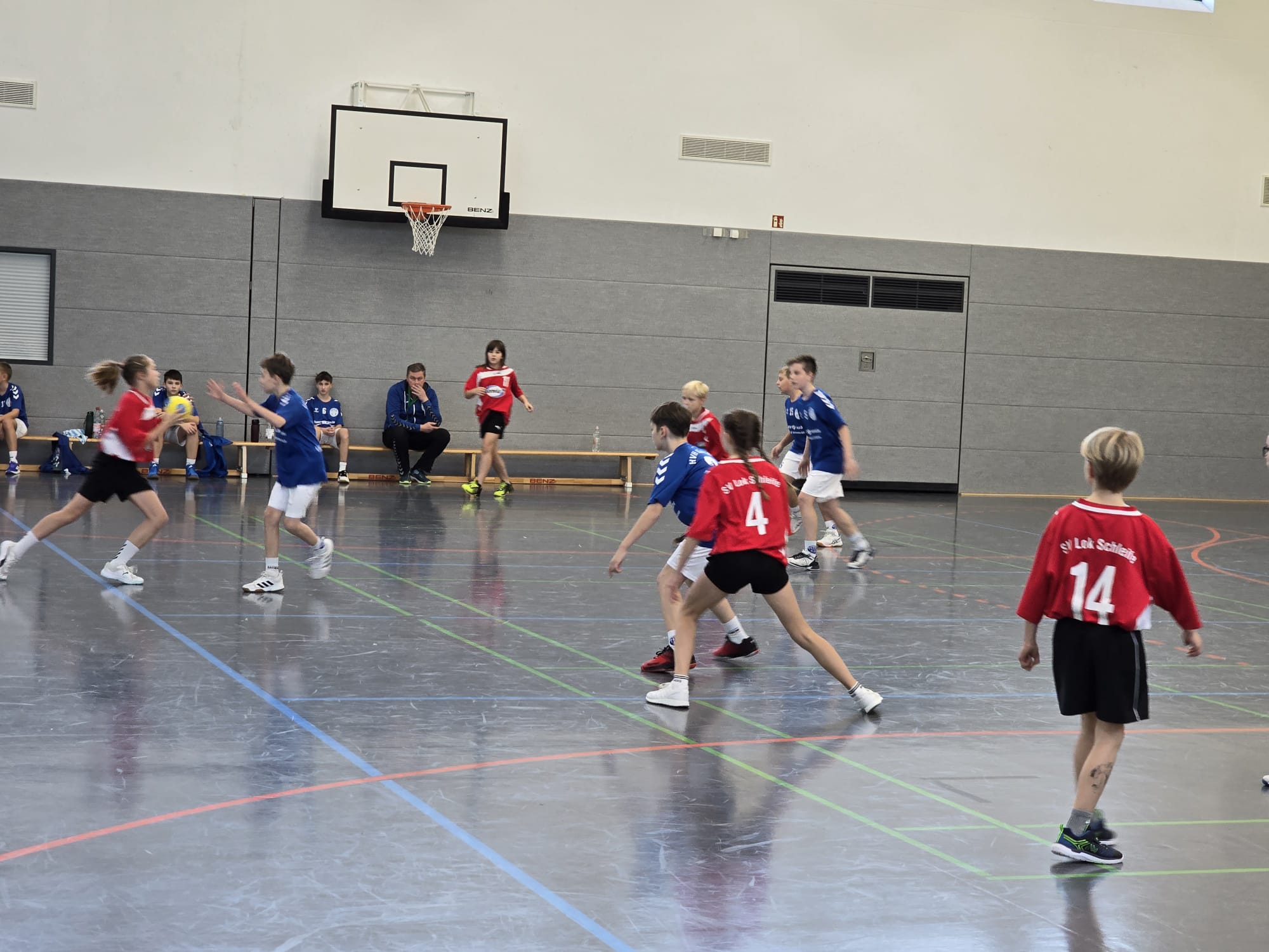 Die Mannschaft erhielt die Vorgabe, das im Training geübte umzusetzen und von Beginn an druckvoll aufzuspielen und sich gleich vom Gegner abzusetzen. Leider war davon in der Anfangsphase der Partie nicht viel zu sehen. In der Abwehr wurde schlecht gegen den körperlich unterlegenen Gegner verteidigt und im Angriff fehlte auch das Tempo im Spielaufbau. So konnte Schleife zumindest bis zum Spielstand von 4:4 in der 8. Spielminute mithalten. Eine Auszeit war also notwendig, um die Lessingstädter wachzurütteln und zu einem besseren Spiel aufzufordern. Das Timeout schien dann auch gefruchtet zu haben, denn bis zur Pause ließen unsere Spieler kein Gegentor mehr zu und im Angriff wurde die Führung Tor für Tor ausgebaut. Nach 20 Spielminuten pfiffen die Schiedsrichter dann beim Stand von 12:4 für uns zur Halbzeit.