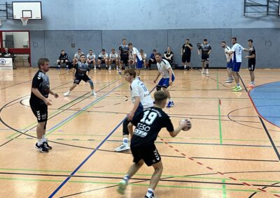 Und wo viel Schatten ist, zeigt sich meistens doch noch ein kleines Licht: Der sein Debüt bei den Männern gebende Jungspund Benjamin Werner wusste auf der vakanten Rechtsaußen-Position vollends zu überzeugen, ließ sich von den vielen „Fahrkarten“ seiner Mitspieler nicht anstecken und netzte erstaunliche 5-mal ein. Ob er auf Dauer das Problem auf dieser Schlüsselstelle lösen wird, bleibt indes fraglich, weil auch Werner ein Rechtshänder ist … für gehobene Effizienz braucht es von Rechtsaußen freilich jemand mit einer linken „Klebe“. Sei es drum.