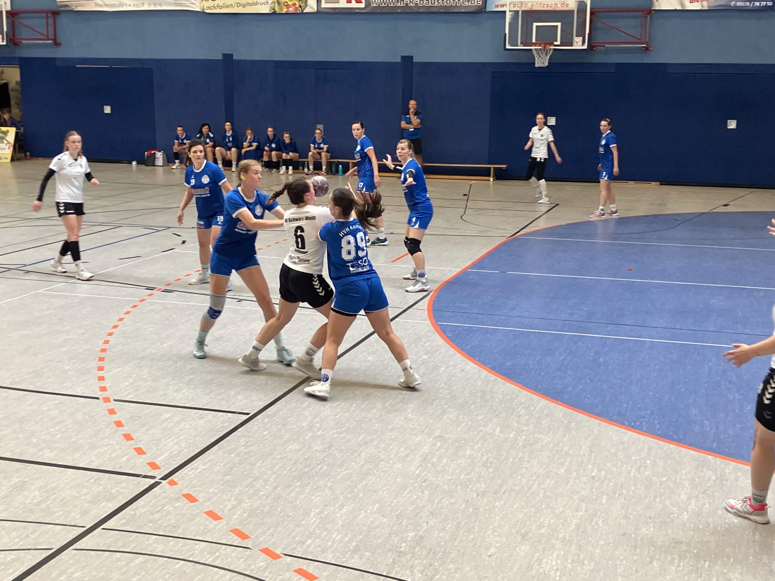 Vergangen Sonntag stand erneut ein Heimspiel auf dem Spielplan. Als Gäste durften die Damen von Schwarz Weiß Sohland begrüßt werden, die mit einer recht jungen Bank in der Lessingstadt anreisten. Auch das Trainerduo Magister/Druschke konnte mal wieder auf eine größere Auswahl zurückgreifen. Nach einem ausgeglichenen Beginn übernahmen die Kamenzerinnen früh die Kontrolle. Angeführt von der treffsicheren Nicole Mittag sowie einer glänzend aufgelegten Laura Frenzel (beide 7 Tore) spielte sich der HVH Mitte der ersten Halbzeit auf 9:4 davon. Zwar konnte Sohland mit einem schnellen Angriffsspiel noch einige Chancen herausarbeiten, doch Elisabeth Kuban im Tor machte ein gutes Spiel und sicherte den Vorsprung durch tolle Paraden, sodass Kamenz zur Pause knapp, aber verdient mit 18:15 führte.