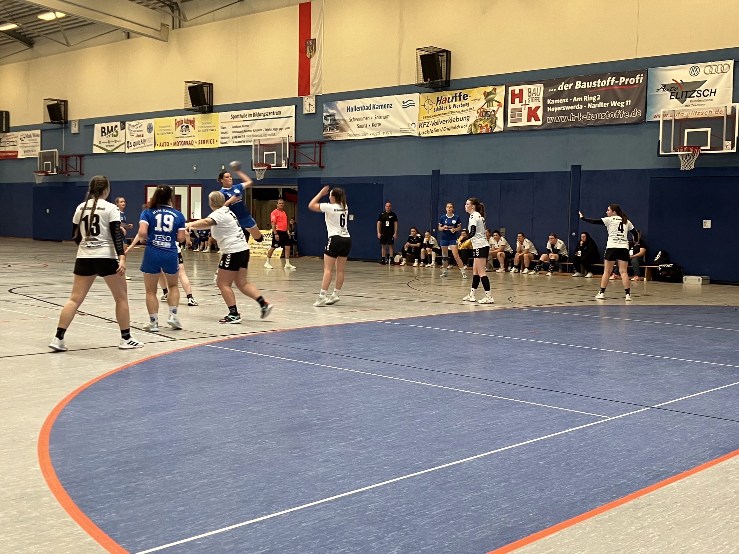 Nach der kurzen Verschnaufpause legten die Gastgeberinnen dann erst richtig los. Sowohl in der Abwehr als auch im Angriff bot sich den Zuschauern ein ansehnliches Spiel. Mit hohem Einsatzwillen bauten sie ihren Vorsprung kontinuierlich aus. Die gerade aus Thailand eingetroffene Rückraumschützin Hanna Pollack und Sara Hartmann am Kreis prägten das Spielgeschehen. Zudem fiel die gegnerische Kreisläuferin, die bis dato die Abwehr gut in Schach gehalten hatte, durch unsportliches Verhalten auf und musste den Rest der Spielzeit auf der Tribüne Platz nehmen. In der 40. Minute lag das Kamenzer Team dann bereits mit 24:18 vorn, und spätestens nach dem 30:21 durch Mittag in der 49. Minute war die Partie entschieden. Auch Neuzugang und ehemalige HVH-Jugendspielerin Jaqueline Mogel konnte sich mit einem Wurf vom Siebenmeterpunkt das erste Mal in die Torschützenliste eintragen. In den Schlussminuten sorgten die Gastgeberinnen mit sehenswerten Treffern von Jasmin Klunker und Cheyenne Pollack für einen noch größeren Vorsprung und den deutlichen 38:26-Endstand.