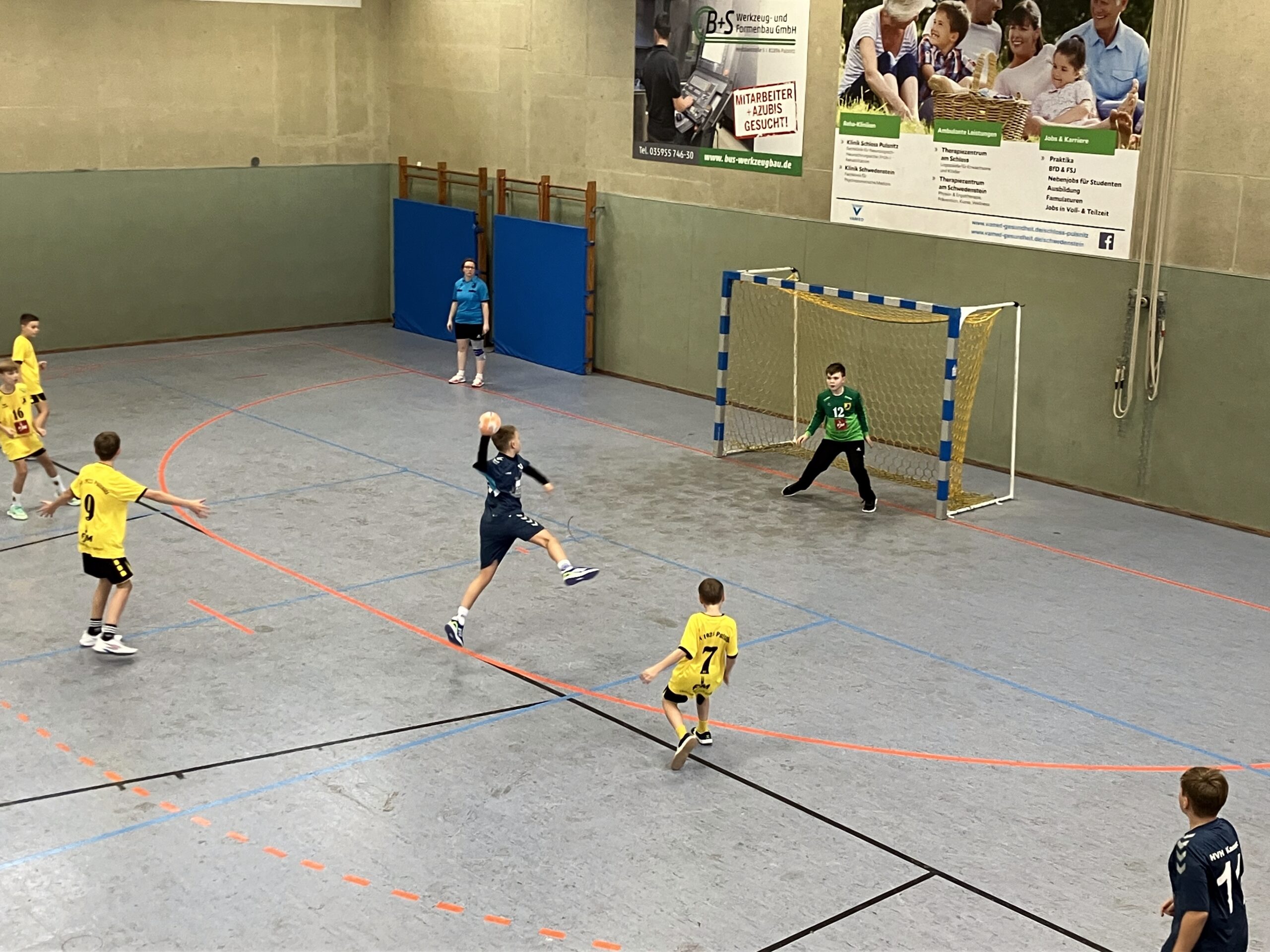 In jedem Fall positiv zu bewerten war das kämpferische Abwehrverhalten unserer Jungs und die gute Torhüterleistung. Diese bildete in der ersten Halbzeit einen wichtigen Rückhalt. Spielstand nach 20 Minuten: 8:7