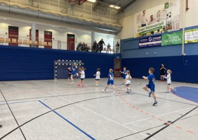 In der zweiten Halbzeit traten unsere Mädels, unterstützt von einem Jungen (da wir nur drei Mädels im Team haben), wieder entschlossen auf das Feld. Wir setzten dort fort, wo wir vor der Pause aufgehört hatten. Das Zusammenspiel war fantastisch, jeder kämpfte um den Ball, und die Torabschlüsse waren erfolgreich. Der Vorsprung wuchs kontinuierlich, und am Ende des Spiels hatten alle Kinder Tore geworfen.