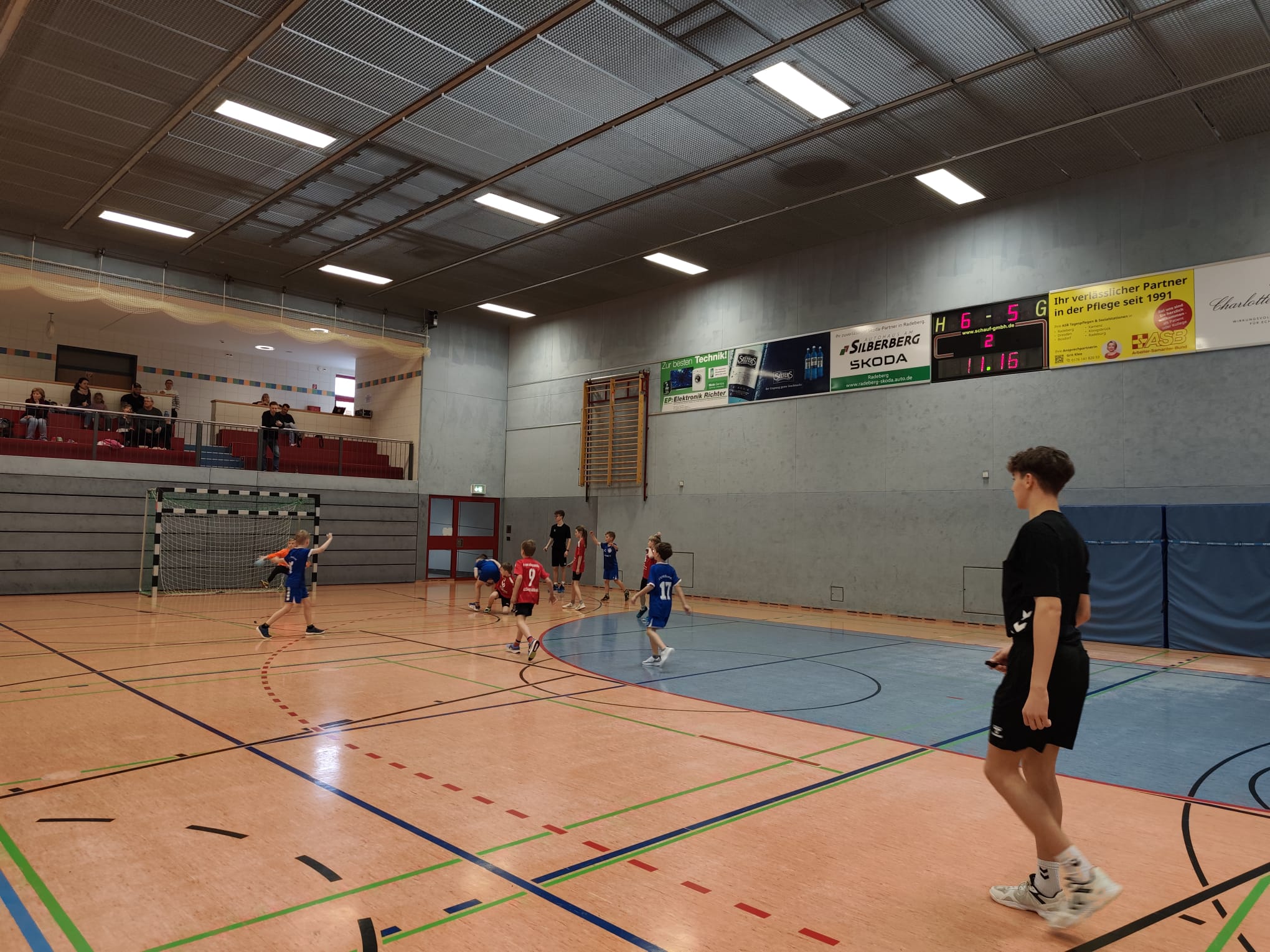 Im zweiten Spiel gegen die Kinder von Lok Königsbrück, geleitet von unserem Co-Trainer, zeigte sich das Team von einer ganz anderen Seite. Das Spiel begann leider holprig und Königsbrück nutzte unsere Unsicherheit aus, indem sie in den ersten 2 Minuten 3 Tore erzielten. Der Co-Trainer nutzte sogleich eine Auszeit, um Unklarheiten bezüglich der Deckung zu klären. Nach dieser kurzen Unterbrechung lief es sofort besser – nur 10 Sekunden später erzielten wir unser erstes Tor!
